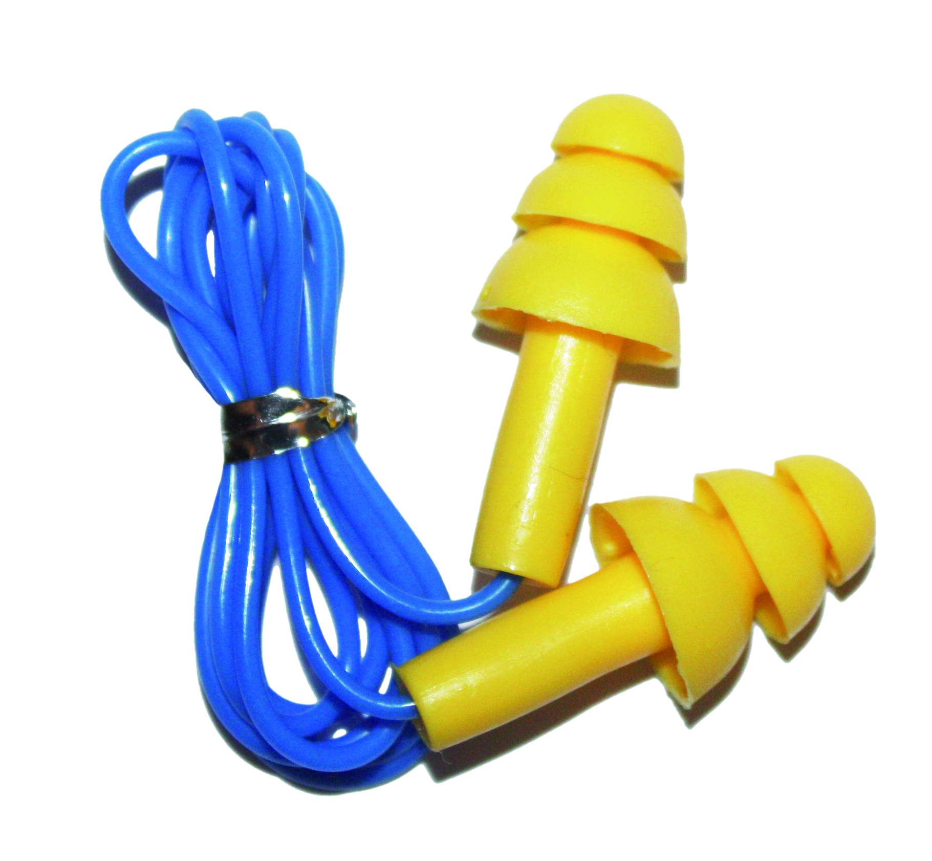 Paire de bouchons d’oreilles réutilisables en silicone avec cordon plastique. SNR 28 dB.