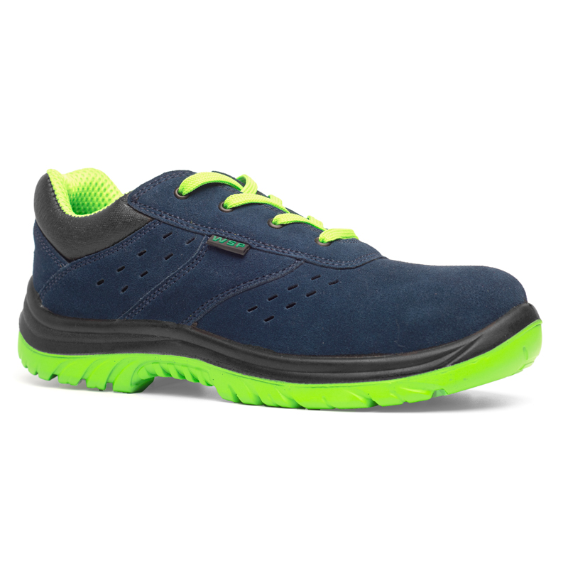 Chaussure avec tige cuir velours perforé. Doublure avec tunnel d’air respirant jaune ou orange. Embout acier. Semelle anti-perforation acier. Semelle de propreté respirante et antibactérienne. Semelle d’usure antidérapante PU/PU compact anti-abrasion résistante a l’huile.