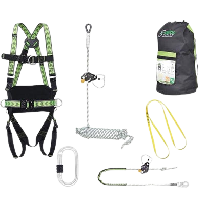 Kit pylône « confort » composé de : 1 Harnais antichute 2 points d’accrochage avec ceinture et boucles automatiques, réf. FA 10 205 00A, 1 Antichute compact coulissant sur corde tressée, lg. 20 m, réf. FA 20 103 00A + FA 20 103 20, 1 Longe tressée de maintien au travail tendeur de longe à came, lg. Max. 5 m, réf. FA 40 906 50, 2 Connecteur acier à verrouillage à vis, ouverture 18 mm, réf. FA 50 101 17, 1 Anneau d’ancrage en sangle 20 mm, longueur 1,20 m, réf. FA 60 005 12, 1 Sac à dos avec poche extérieure à zip, capacité 12L, réf. FA 90 115 00.