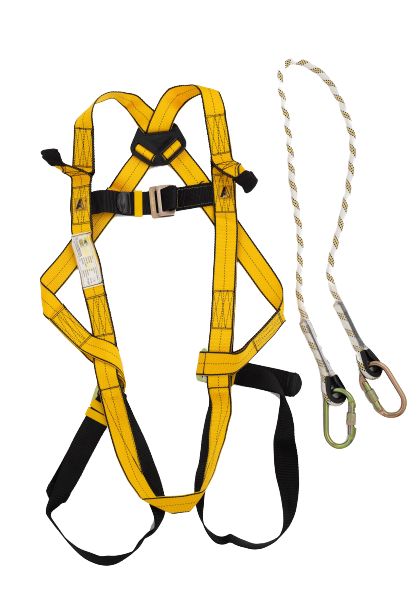 Kit Nacelle. Composé de : 1 harnais 2 points d’accrochages (W-FBH 12), 1 longe tressée longueur 1,5 m (W-BRL 281) avec 2