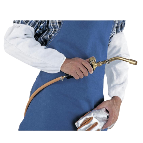 Paire de manchettes soudeur croute de cuir de bovin. Maintien par élastique aux extrémités. Longueur : 40 cm.