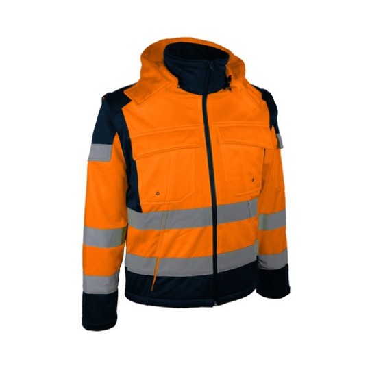 • Veste de signalisation Sofshell avec capuche et manches amovibles.