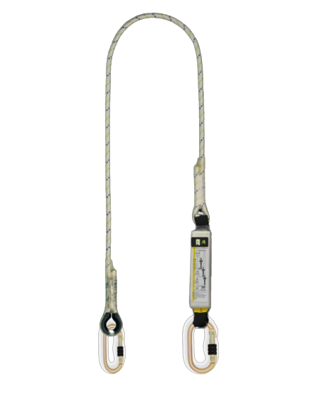 Longe antichute en corde tressée diamètre 12 mm avec absorbeur d’énergie en sangle équipée de 2 mousquetons aciers à verrouillage à vis W-SSK 112. Longueur 1,5 m.